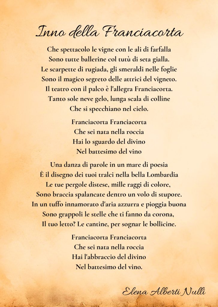 Una composizione interpretata da Giacomo Gozzini in un suggestivo duetto per soprano, mezzosoprano, arpa e archi. Il testo della ballata è tratto da una poesia di Elena Alberti Nulli, che, insieme alla musica, crea un omaggio poetico e musicale alla terra della Franciacorta.