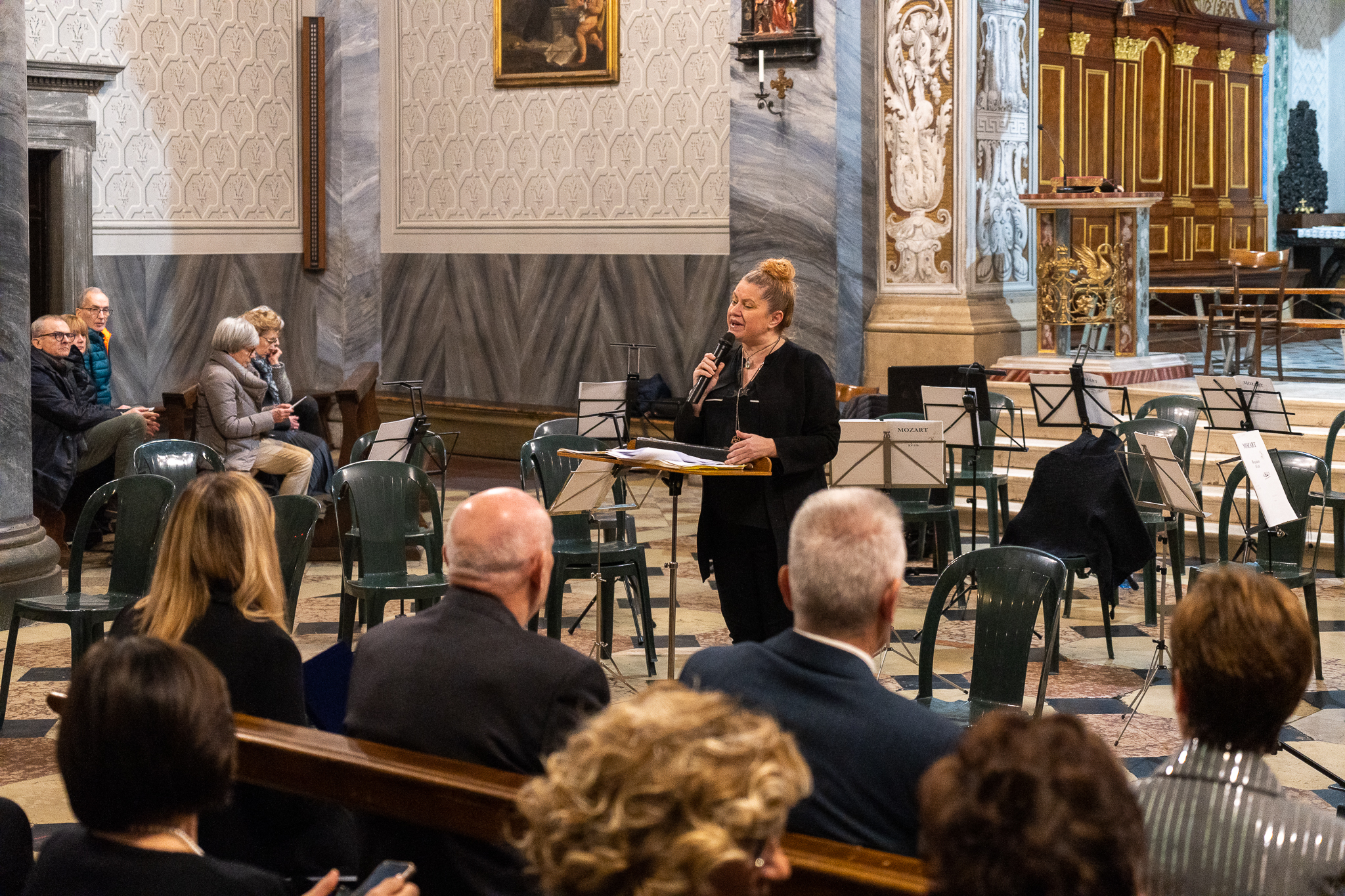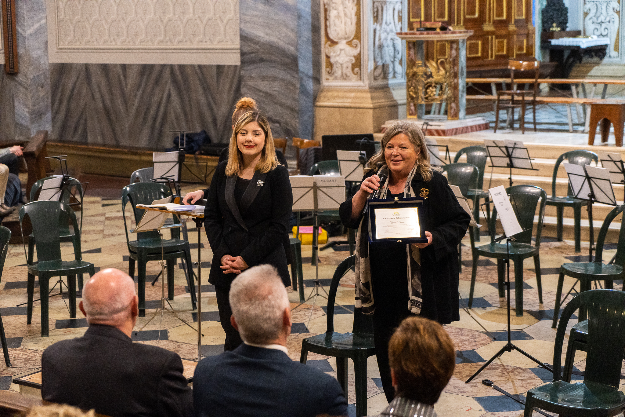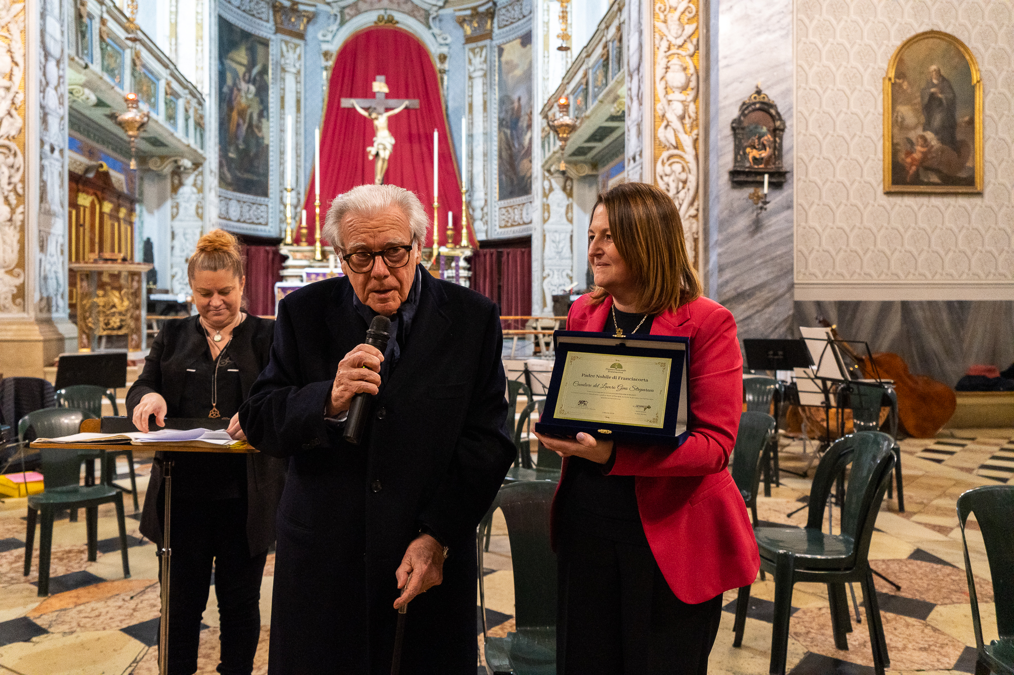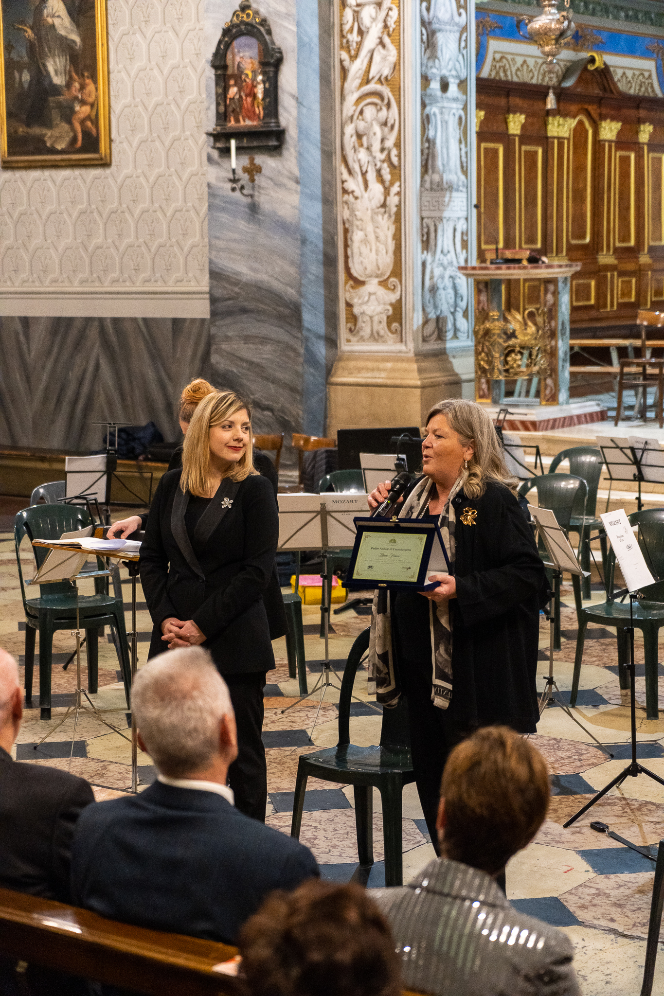 Milla da il benvenuto agli ospiti e prima del concerto viene consegnato il premio nobile padre di FRANCIACORTA dedicato alla memoria di imprenditori, padri e madri di famiglia, e a tutte le persone che hanno reso grande la Franciacorta