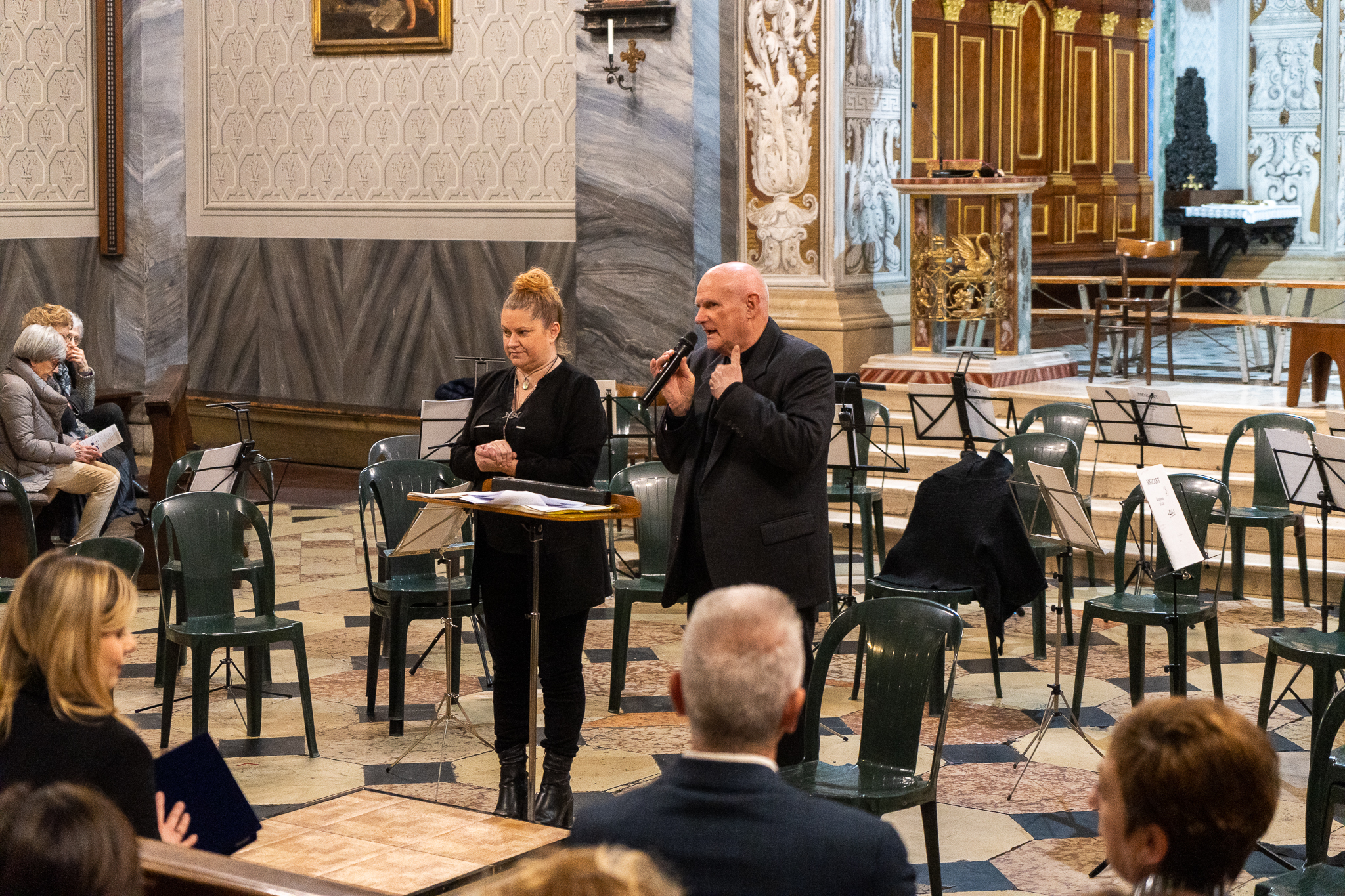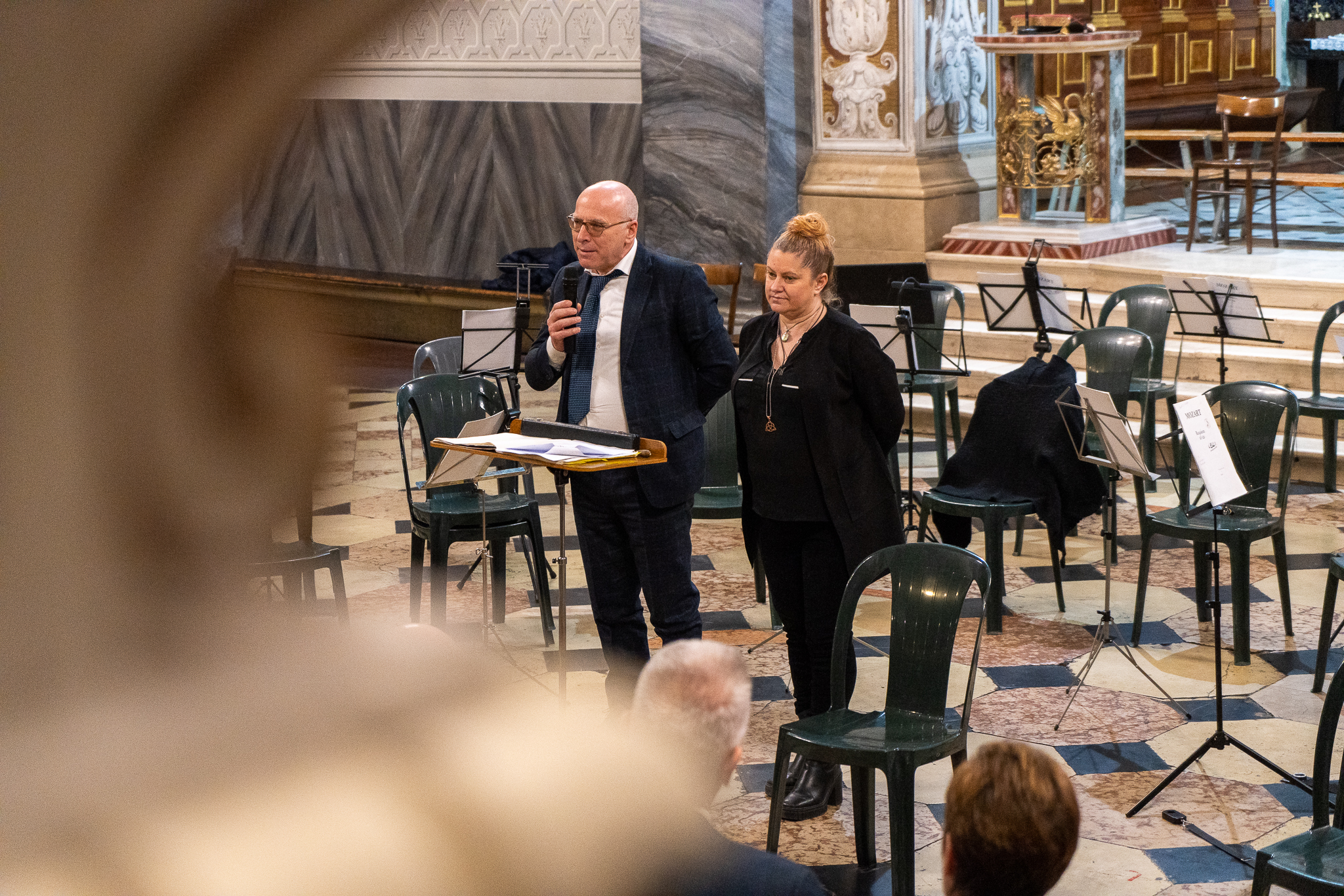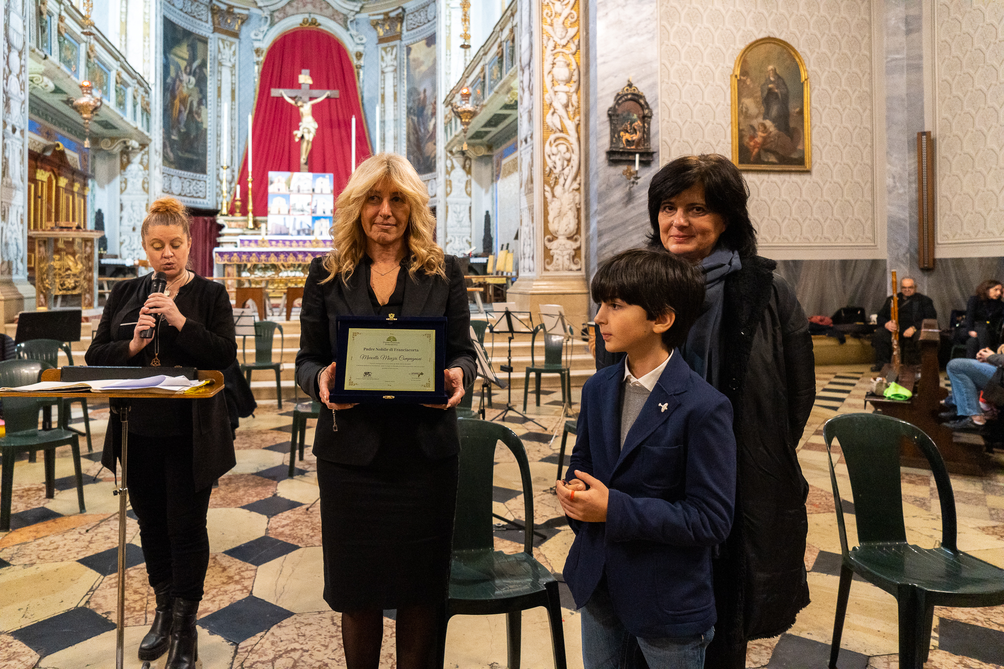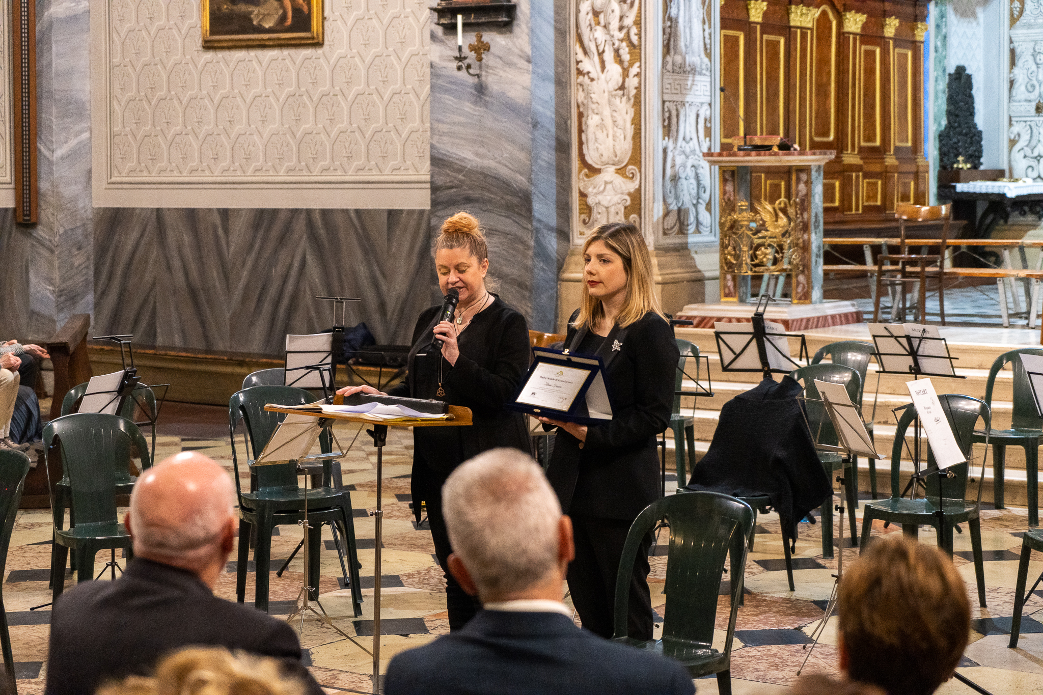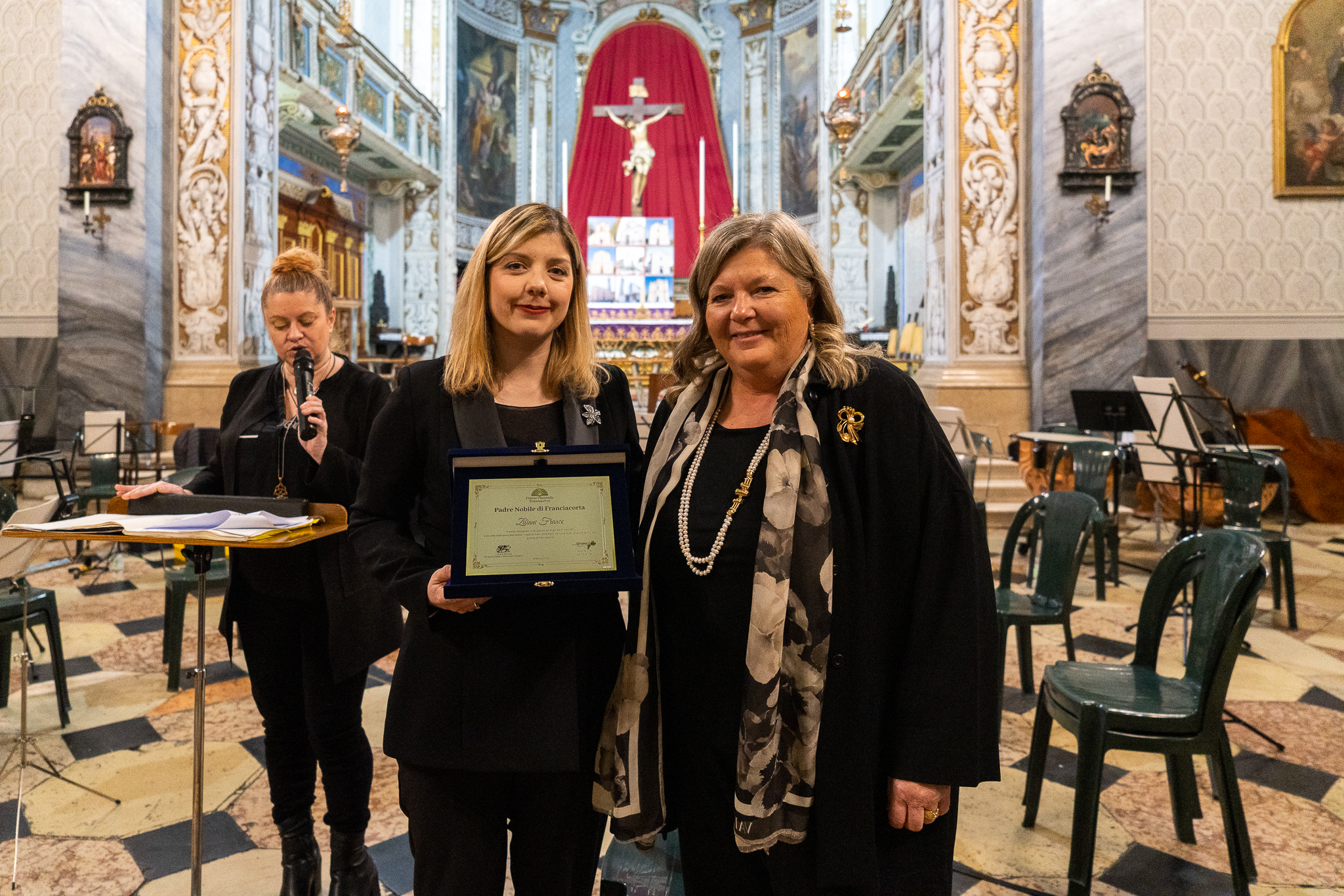 Milla da il benvenuto agli ospiti e prima del concerto viene consegnato il premio nobile padre di FRANCIACORTA dedicato alla memoria di imprenditori, padri e madri di famiglia, e a tutte le persone che hanno reso grande la Franciacorta