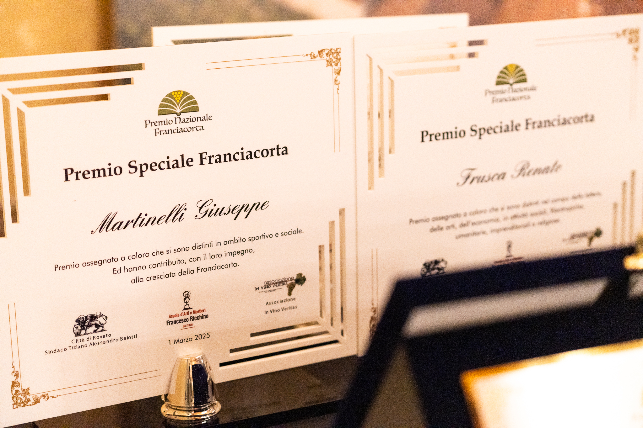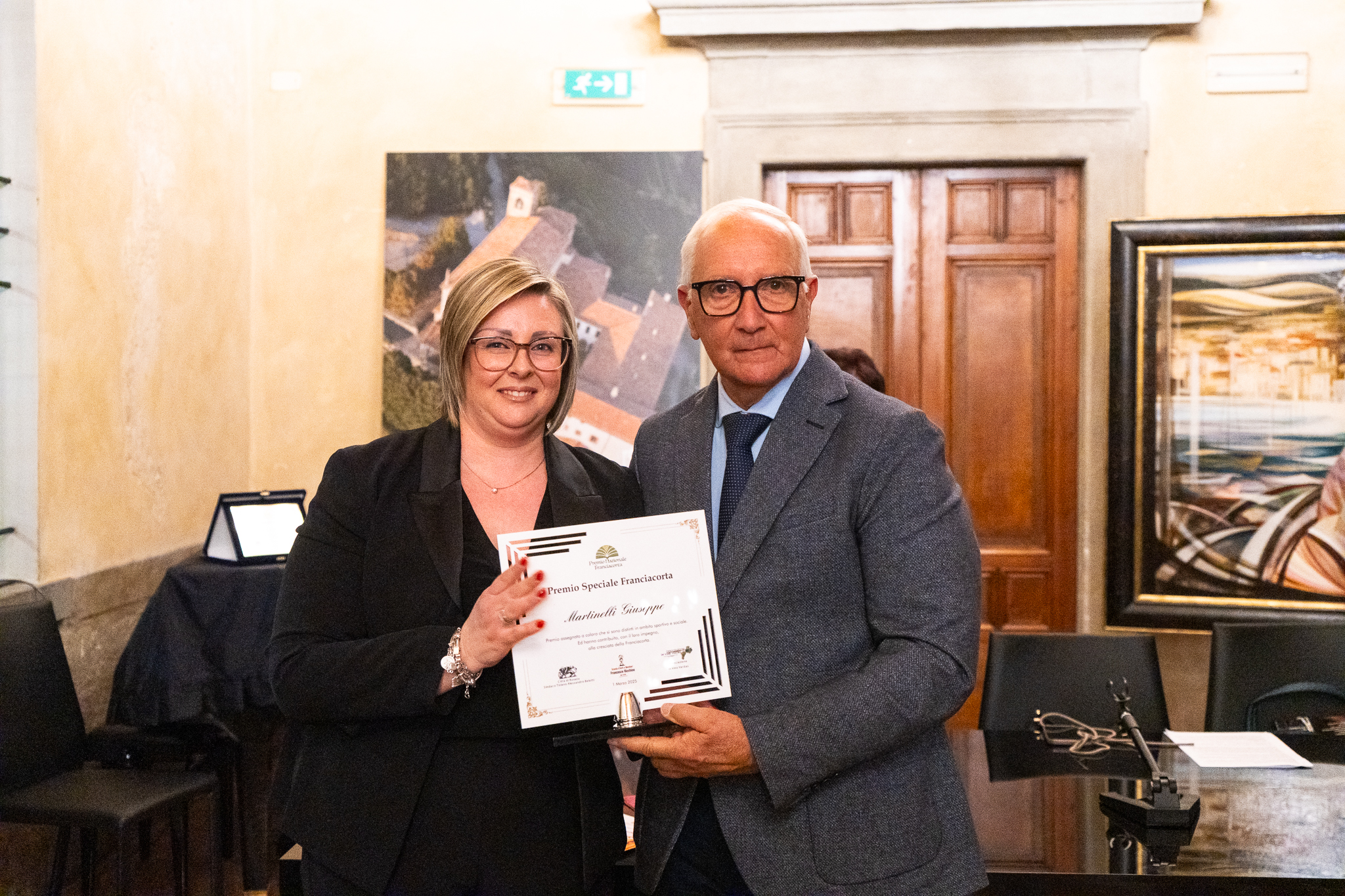 La Sala del Pianoforte del municipio di Rovato ha fatto da cornice, sabato sera, alla consegna del Premio Internazionale Franciacorta, giunto quest’anno alla sesta edizione, ideato e organizzato dall’associazione “In Vino Veritas” presieduta da Mariuccia Ambrosini. Numerose le targhe assegnate: il Premio Nobile padre di Franciacorta è stato ritirato da